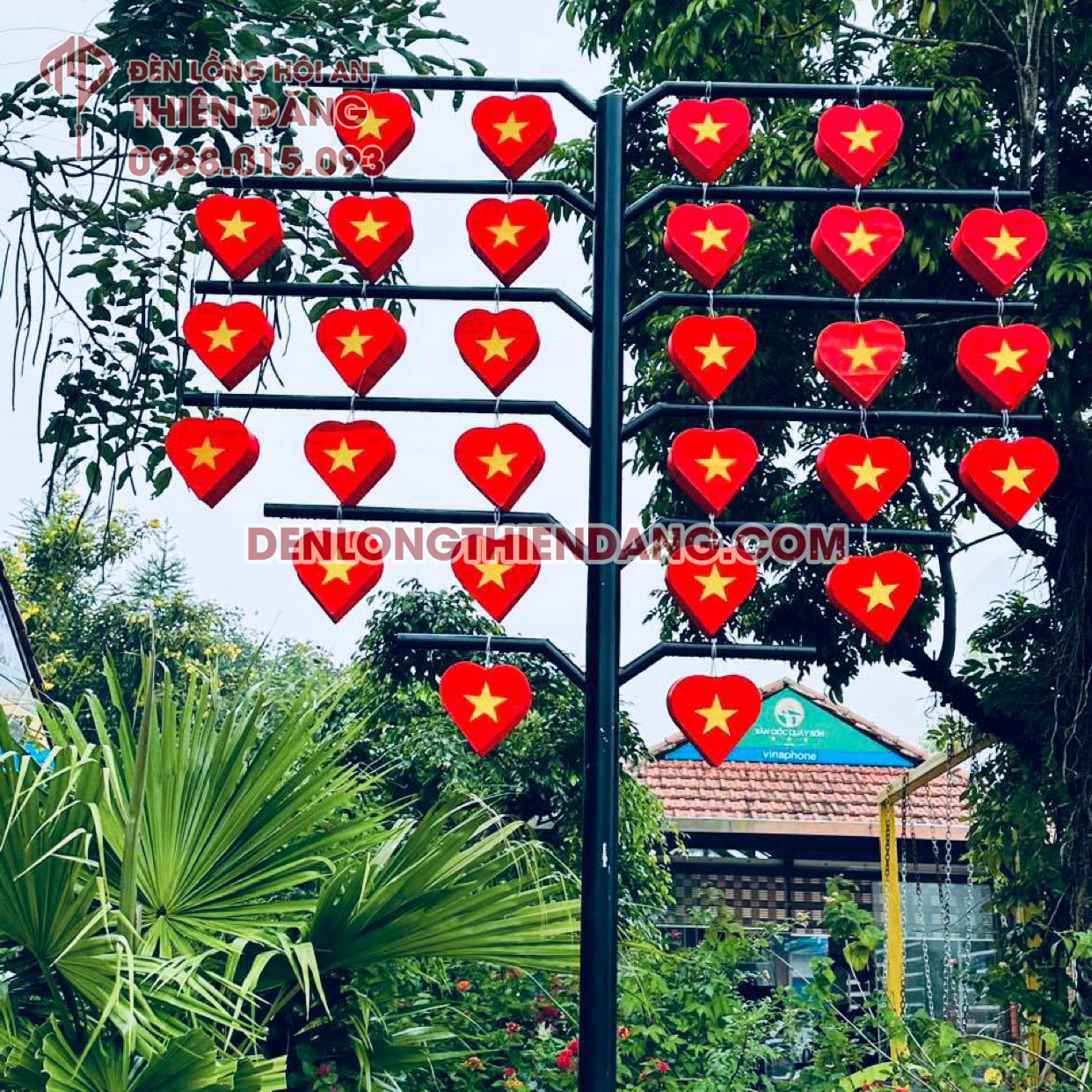 Đèn trái tim có thể sử dụng trong nhà và ngoài trời, dễ treo bằng móc dây hoặc khung dựng, có thể lắp bóng đèn bên trong để tăng hiệu ứng ánh sáng.